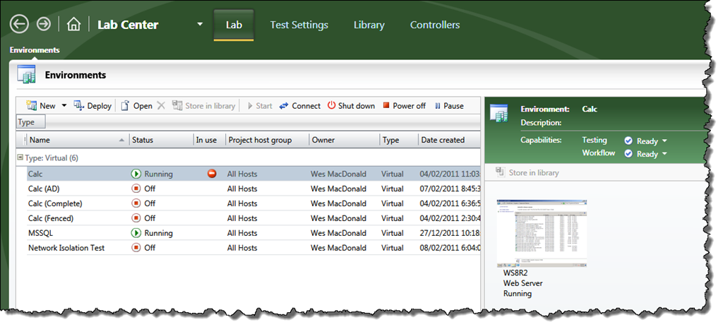 TFS 2010 SP1 will not patch the Test Controller or Test Agent products. In this example I have a virtual machine in my LAB which has both of the lab agents (workflow and testing) installed and configured.