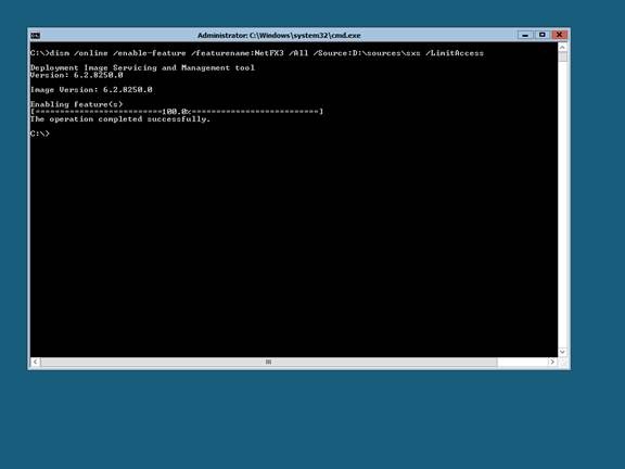 dism.exe /online /enable-feature /featurename:NetFX3 /All /Source:d:\sources\sxs /LimitAccess