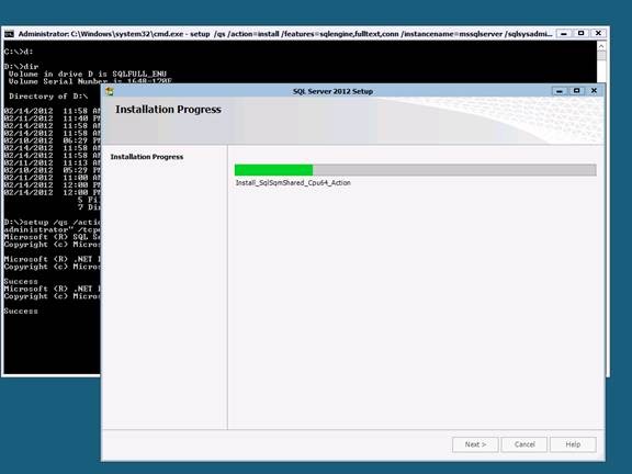 Setup.exe /qs /ACTION=Install /FEATURES=SQLEngine,FullText,Conn