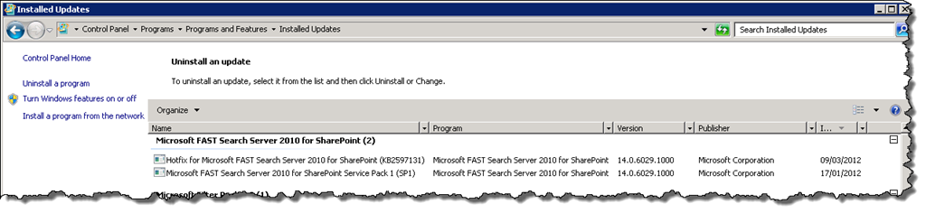 Installing a software update to FAST Search Server is done using the following procedure, in this example below I am using the method for a “single server deployment”
