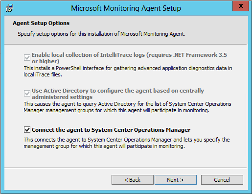 The next dialog should look something like this (provided you aren’t connecting the agent to System Center).