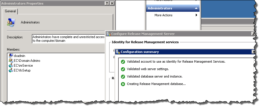 I used the TFS Setup account (contoso\tfsSetup) to perform the installation/configuration of the Release Management Server for two reasons: