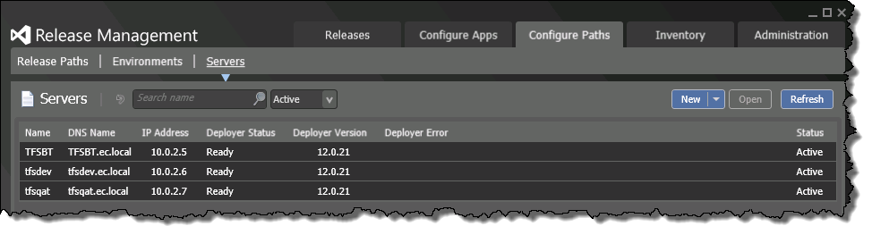 Click Save & Close. Let’s go and find those Deployment Agents to see if Release Management can see them! Navigate to Configure Paths | Servers