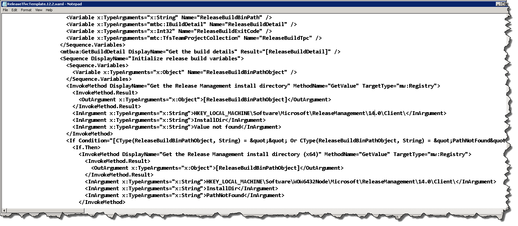 In this particular environment I have a TFS 2015 Update 1 RC1 server installed and using Visual Studio Enterprise 2015 and Release Management Client 2015. Locate the Build Process Template used by your Build Definition and open it using notepad or your favorite text editor and locate the references to ReleaseManagement\12.0\Client and change them to ReleaseManagement\14.0\Client.