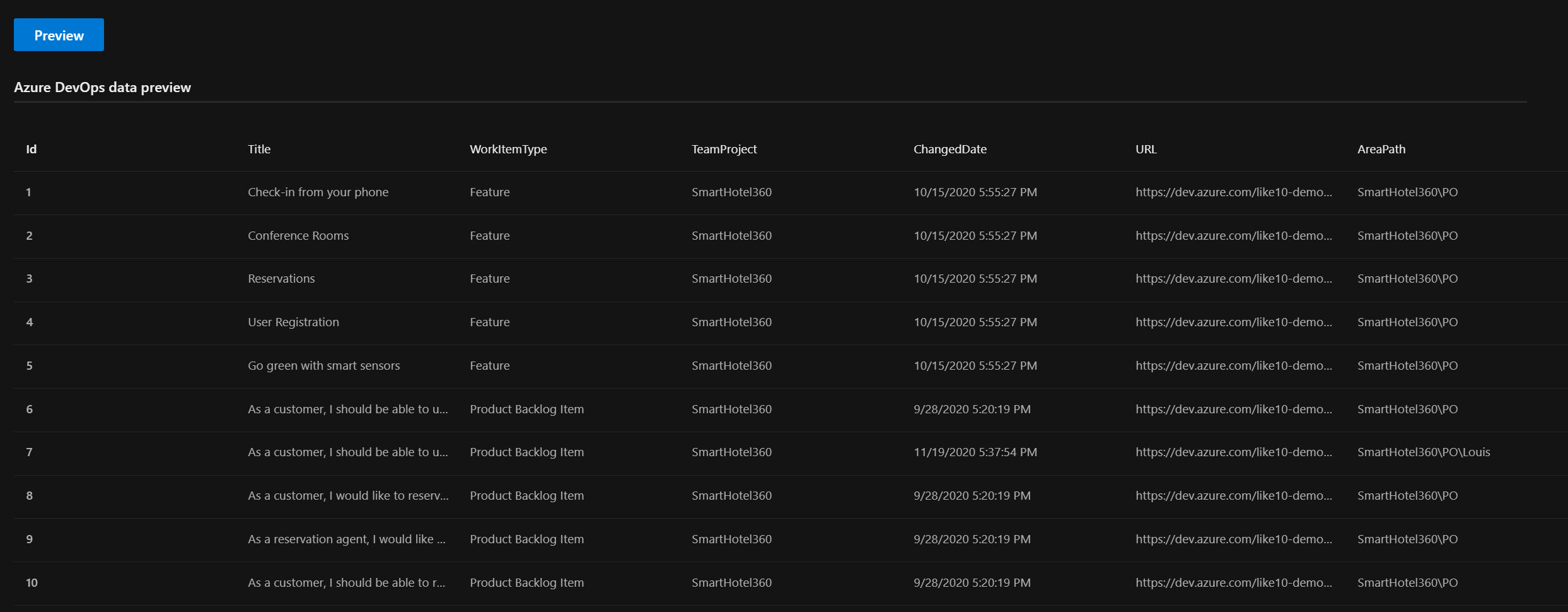 Once you are done selecting the fields you’d like for indexing, you can click Preview to see the data that will be indexed by the connector.
